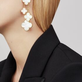 18K Yellow Gold Perl̩e Clovers Hoop Earrings