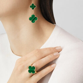 18K Magic Alhambra Three Malachite Motifs Clover Earrings