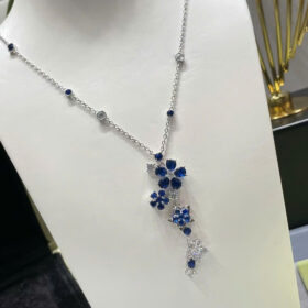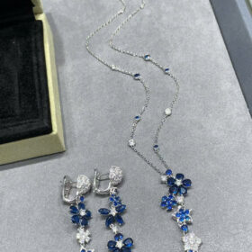 - Diamond: 13 stones, 1.34 carats ,Sapphire: 31 stones, 4.6 carats