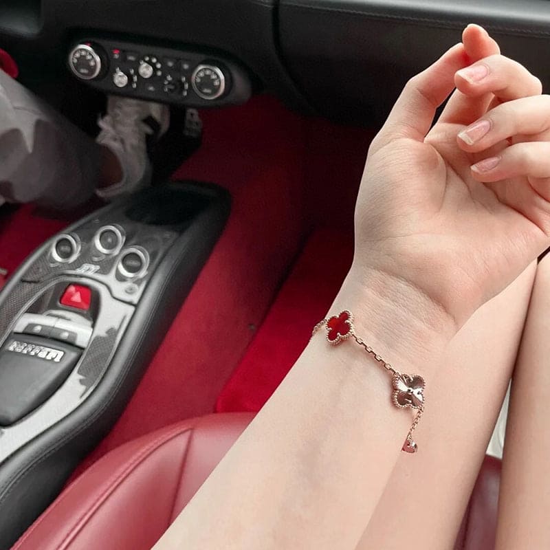 18K Vintage Alhambra Five Motifs Carnelian Clover Bracelet